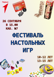 26 сентября в первичном отделении Движения Первых Центре творчества состоится фестиваль настольных игр! Это отличная возможность для участников погрузиться в мир увлекательных историй и стратегий, пообщаться с единомышленниками и весело провести время.